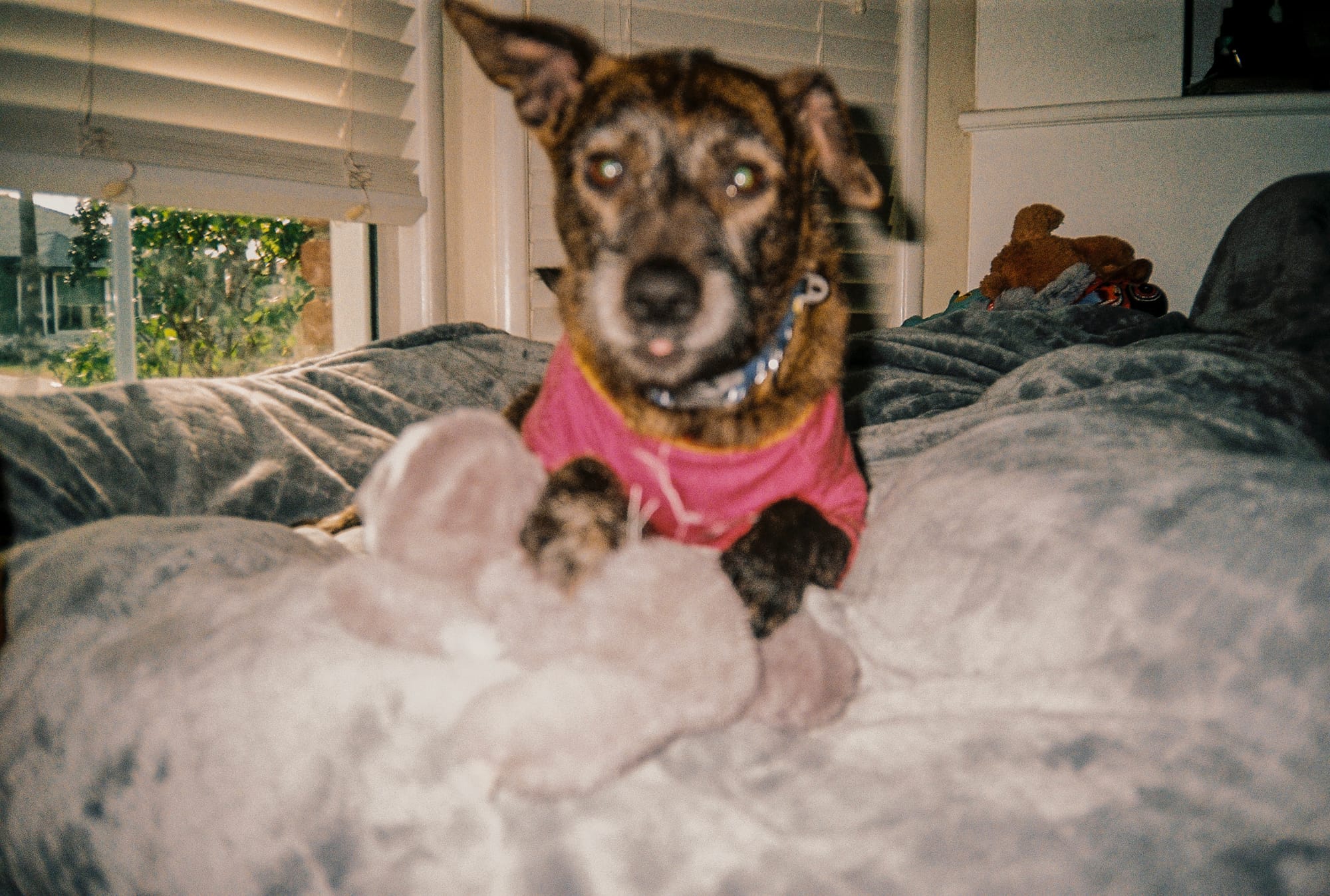 The motivation to get into film photography comes from a desire to memorialize my dogs (and my life) in physical photo albums so that I can have them with me forever, instead of losing them to the cloud or to some backup from three phones ago that I no longer have access to. There are photos from my teenage years and from my early twenties that I can no longer find, and I have no idea where they went. There are photos from when we first got Luna—when she was three months old!—that are no longer on my phone, and I have no idea where they are. Meanwhile, every time I go back to my grandparents' house, I see photo albums dating back to the 1980s—before I ever existed—documenting their lives, and I want to bring that kind of permanence and recollection into my own life.